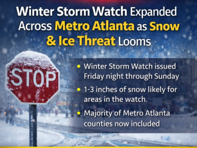 Winter Storm Watch Expanded Across Metro Atlanta as Snow & Ice Threat Looms