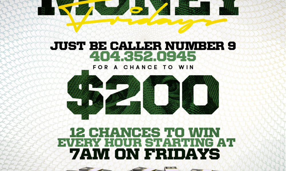 Tune in, turn up, and get that bag — because Free Money Fridays are where Atlanta wins big. Don’t miss your chance to claim your $200 on Streetz 94.5, Atlanta’s New Hip-Hop Station!