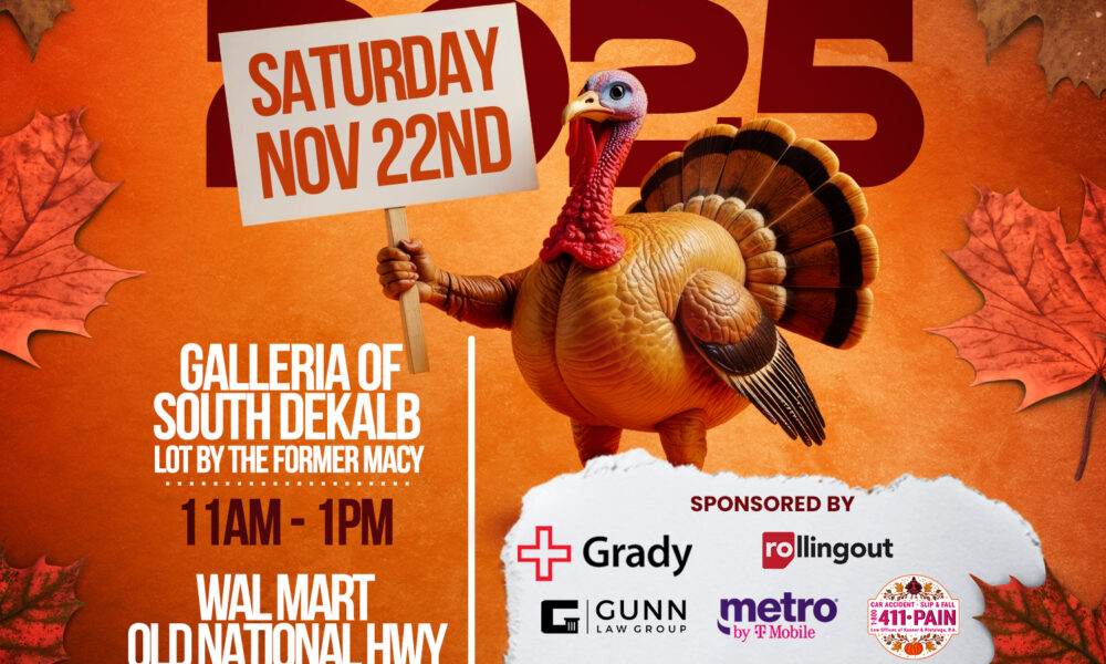 We’re giving away free turkeys while supplies last, one per family — first come, first served! This annual event brings together local organizations and sponsors including Grady, Rolling Out, Gunn Law Group, Metro by T-Mobile, Blue Flame Lounge, and Streetz 94.5, all working together to make sure families across Atlanta can enjoy a warm holiday meal.