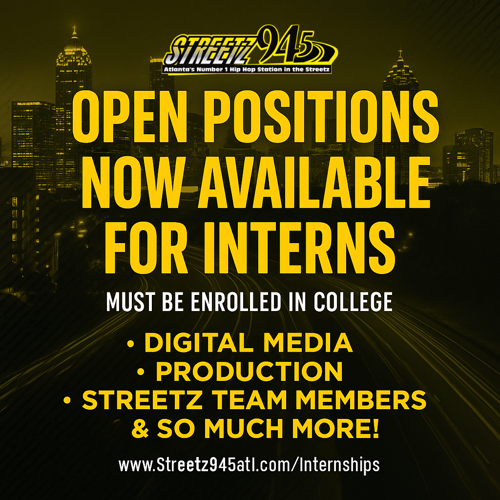 Streetz 94.5 is officially opening its doors for a new wave of talented, motivated, and creative interns who are ready to take their first step into the world of media, entertainment, and digital content. As one of Atlanta’s leading radio brands, we are committed to developing the next generation of industry professionals—and this is your opportunity to learn, grow, and get real hands-on experience inside a fast-paced media environment.