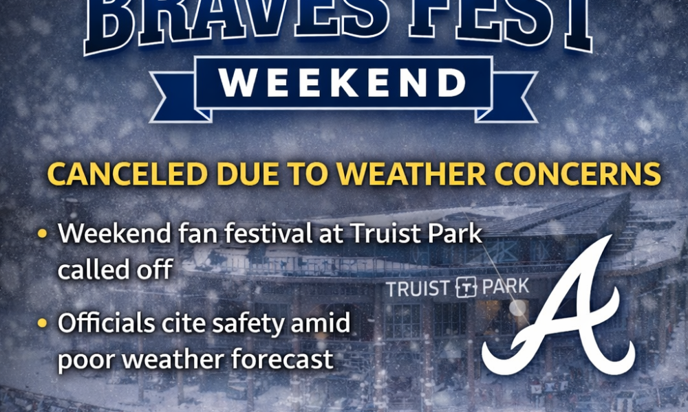 The annual Braves Fest, originally scheduled for this Saturday and Sunday at Truist Park and The Battery Atlanta, was expected to bring fans up close with Atlanta Braves players, live entertainment, autograph sessions, and family-friendly activities. However, organizers confirmed the cancelation late Friday following ongoing adverse weather forecasts that included the threat of significant winter weather across the region.
